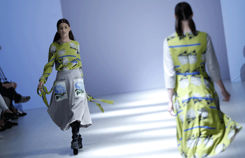 A model presents a creation by Ukrainian designer Poustovit during the Mercedes-Benz Fashion Days in Tbilisi, Georgia, May 2, 2015. [Photo/Agencies]