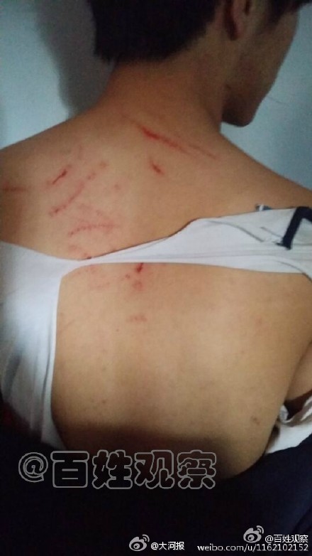 [提要] [衰]】近日,郑州财经技师学院余同学惨遭四个女老师围殴三次,衣服被撕烂,背部全是抓痕,其中几位女老师是20岁出头,冲突中女老师骂声响彻校园。据了解,余同学班主任体罚学生发生口角,班主任几位“闺蜜同事”帮其出头。