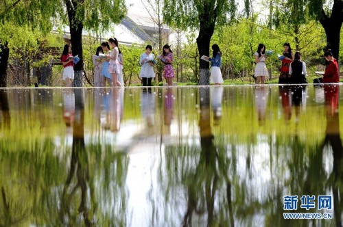 5月6日,沈阳农业大学的学生在校园里晨读。当日是二十四节气中的立夏,沈阳农业大学夏季晨读活动启动。该校将开展“校园最美读书角”“读书达人”“晨读会”“校园好书声”等丰富多彩的活动,让书香溢满校园。新华社发(张文魁摄)