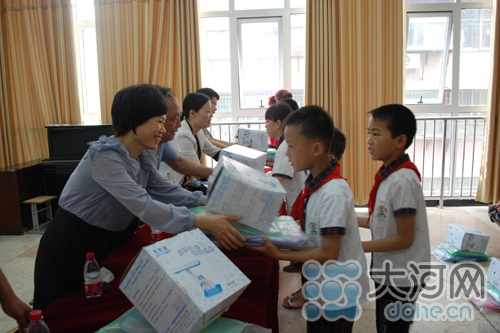 当天上午,在东环路小学和天宏小学,卫东区关工委负责人来到孩子们中间,给学生代表送去了书包、护眼灯、文具盒等学习用品,祝愿广大少年儿童节日快乐,希望大家好好学习,天天向上,早日成为对国家、对社会有用的人才。