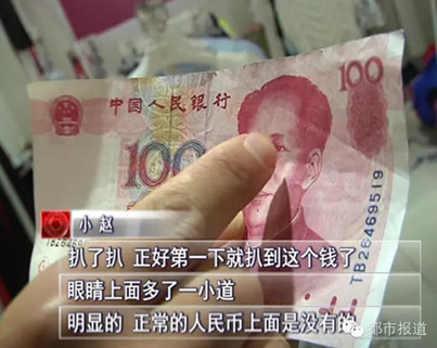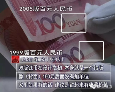 网上有一则传闻,说有人发现错版人民币,市场价值超百万。最近几天,郑州一家服装店的老板小赵也被这条消息搅的是心神不宁,因为他在营业款中也找到一张疑似错版的百元大钞。
