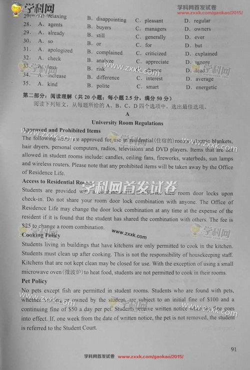 2015普通高等学校招生全国统一考试:英语试卷及答案(天津卷)
