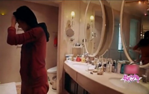 许晴家的卫生间也是同样的高规格,双人洗手台的一角堆满了各种保养品,女星么,“面子”是最重要的,种类繁多的化妆品码放的较为凌乱,看来许晴在生活中是一个比较“懒散”的人?