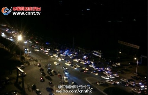 现场停泊了几十辆警车。据河北省公安厅政治部副主任兼宣传处长@永华的小菜园 的微博:昨晚十点多在石家庄开发区撞死一人的交通肇事者,不是地方公安机关工作人员。事发后开发区公安分局已将该人控制。不管涉及到谁,什么身份,警方一定会依照事实和法律严格办案。