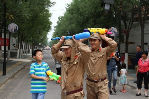 山东景区现儿童扮“八路军” 持水枪打“鬼子”