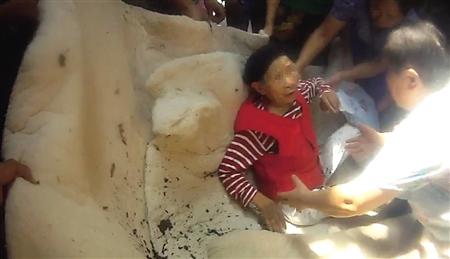 八旬老太掉下雨棚