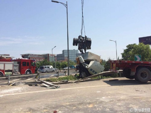 北京一货车冲下6米深沟 司机称有小轿车别自己