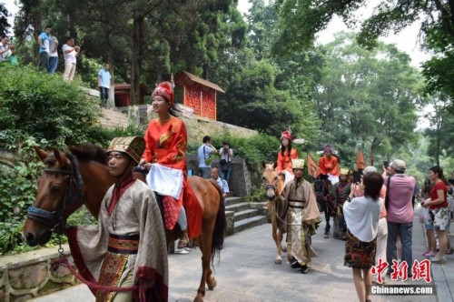 湖北省高考状元榜眼骑马游园引围观(组图)