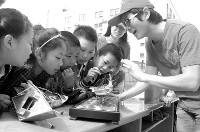 近日,志愿者通过“辽宁号”航模为小朋友讲解海防科普知识。江苏科技大学船海学院志愿者走进镇江市七里甸街道五里社区,通过航模演示、宣传展板等形式,向小朋友介绍我国的航海史及相关海防科普知识,迎接7月11日“中国航海日”的到来。 石玉成 巫蓉 摄