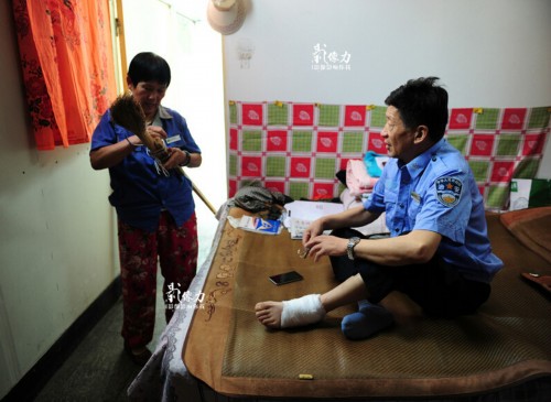 樊庆考夫妻俩老家在聊城阳谷,九年前为了帮助儿女照顾孩子,老两口来到济南。后来孩子长大了,不再需要他们照顾,于是老两口出来应聘成为清洁工,专门负责打扫“过街天桥”。(张伟摄)