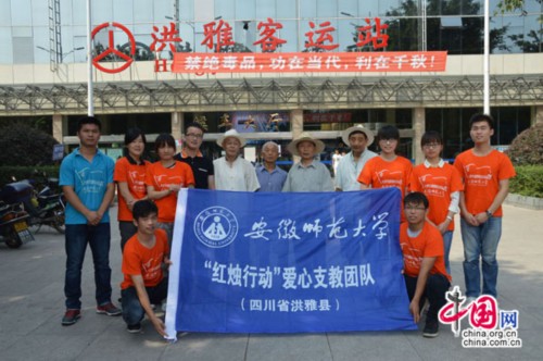 中国网7月14日讯(记者 曾瑞鑫 通讯员 吕速 丁文一)荧荧“红烛”之光,照亮成长之路。生科院“红烛行动”爱心支教志愿服务团队在何所惧老师的带领下,接过火炬,与爱同行。经过两天一夜近40个小时的辗转,顺利到达千里之外的暑期社会实践目的地——四川洪雅县柳江镇中心小学,并迅速投入到志愿服务当中。