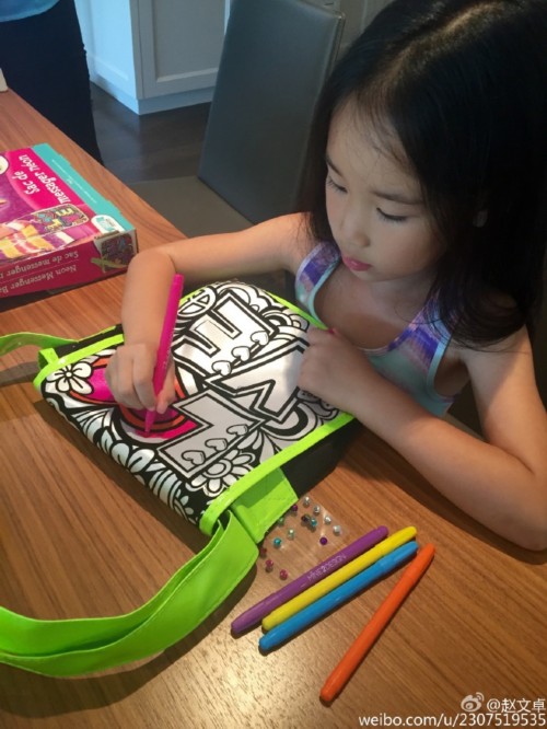 今日,赵文卓在微博晒出女儿的彩绘照,称:“姐姐进步飞速,自己给自己彩绘,自己设计的包包,而且还会包饺子了。”照片中,赵文卓的女儿左眼画着五彩蝴蝶纹,很是靓丽,另一张中,她拿着自己设计的花色手包,笑容甜美。