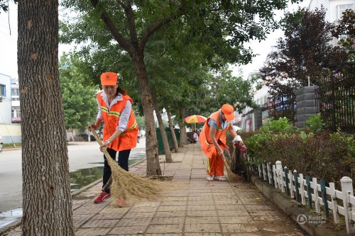 7月28日,大学生陈蒙恩和养母一起清扫道路。暑假开始以来,在天津医科大学就读的陈蒙恩回到家乡山东沂南县,每天和当环卫工的养母陈荣一起扫马路。今年21岁的陈蒙恩原是一名弃婴,被捡拾废品的陈荣抚养后,得到社会各界和爱心人士帮助,从小学到中学全部免费就读。2011年,沂南县环卫所安排陈荣当上环卫工,母女俩生活得到改善。2013年陈蒙恩考入天津医科大学。新华社发(杜昱葆 摄)