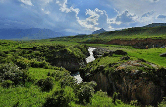 Summer scenery of grassland in Qilian Mountains attracts tourists